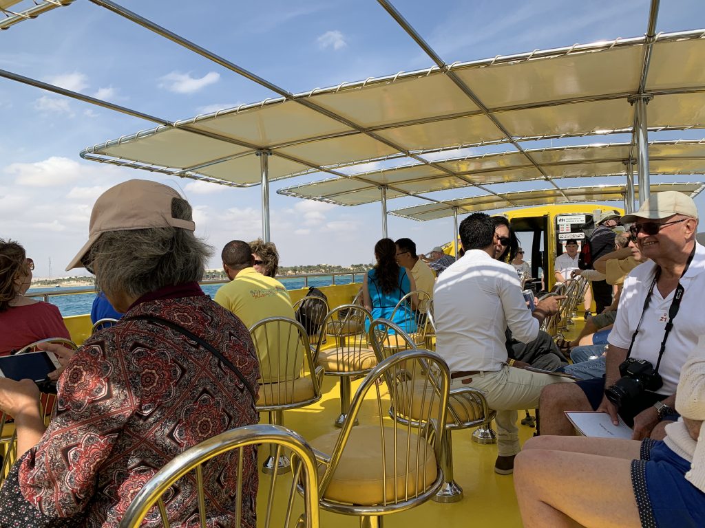 The first part of the tour consists of a cruise around the harbor, viewed from the upper deck of the boat. The guides give commentary while you glide past beautiful resorts and give the many kitesurfers a wide berth. There is a nice breeze, making this an excellent location for kitesurfing. I enjoyed the rainbow of brightly colored kites and daredevils doing a variety of breathtaking tricks followed by smooth landings. I’ve never seen so many kitesurfers before – and I live in Florida! The hospitable guides provide free bottled water and soda for further comfort on the tour. The warmth of the Egyptian sun was soothing. The highlight of the tour may be the underwater portion, but don’t count out the pleasure above sea level!