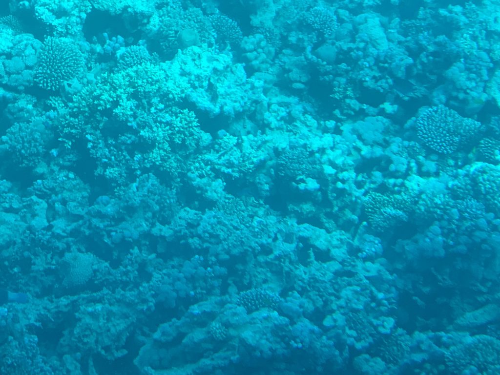 The second portion of the tour involves going down below and taking your window seat to enjoy the underwater action. The guides provided a colorful brochure identifying the many types of fish and coral that are native to the Red Sea. The water here is not deep, and you get a great view of the sea floor. Coral covers practically every square inch of the sea floor here, and it comes in seemingly endless varieties. According to the National Ocean Service, “Coral reefs begin to form when free-swimming coral larvae attach to submerged rocks or other hard surfaces along the edges of islands or continents.” (oceanservice.noaa.gov.) After taking an Aquascope submarine tour three times in different parts of the world, I found the Red Sea to have the most interesting and abundant corals. They carpet the entire sea floor!